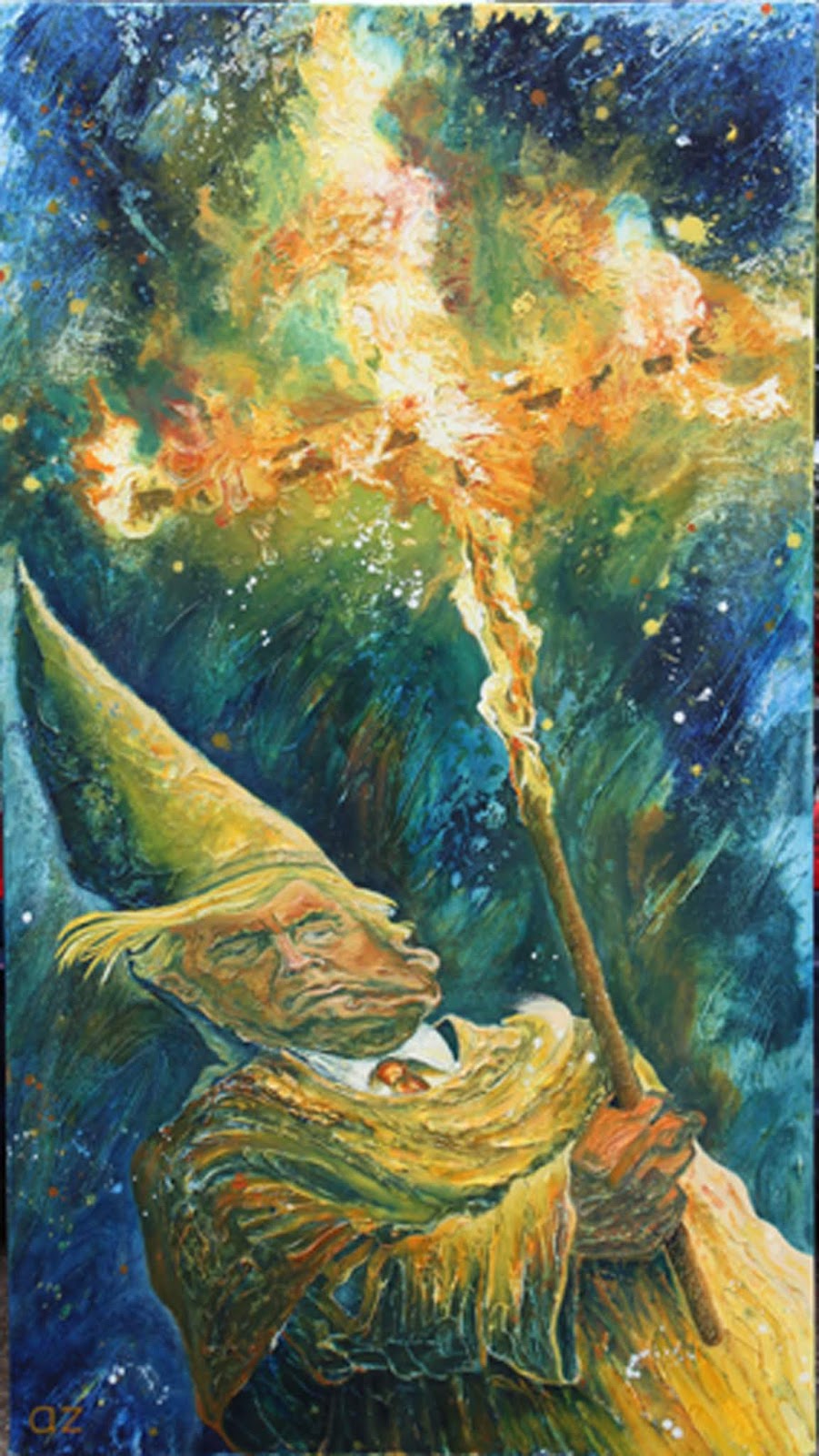 Take, for example, Zamero’s painting of Donald Trump, Trump Lights Up the Darkness, after the Spanish painter Francisco Goya’s The Inquisition Tribunal (1812-19). Goya was a liberal opposed to the absolutist policy of Ferdinand VII of Spain, which included such things as bullfights, madhouses, flagellations and auto-da-fé, as depicted here. Zamero adopts and dresses Trump in the tall, peaked cap, with its associations both with the dunce’s cap (alluding to Trump’s alleged lack of intelligence) and also to the Ku Klux Klan, referencing his racist comments and policies, and the terrifying contemporary rise of the Far Right in the US and beyond.